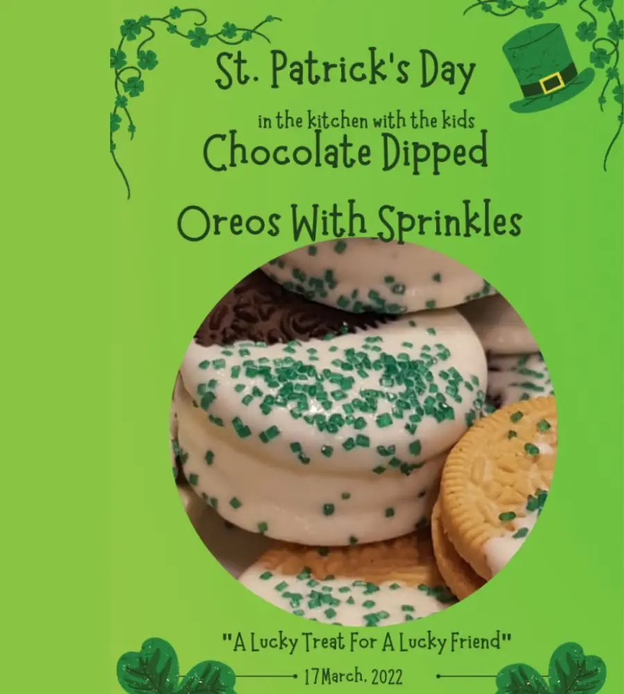 I will also tell you how to make White Chocolate Dipped Oreo Cookies for St. Patrick’s Day.